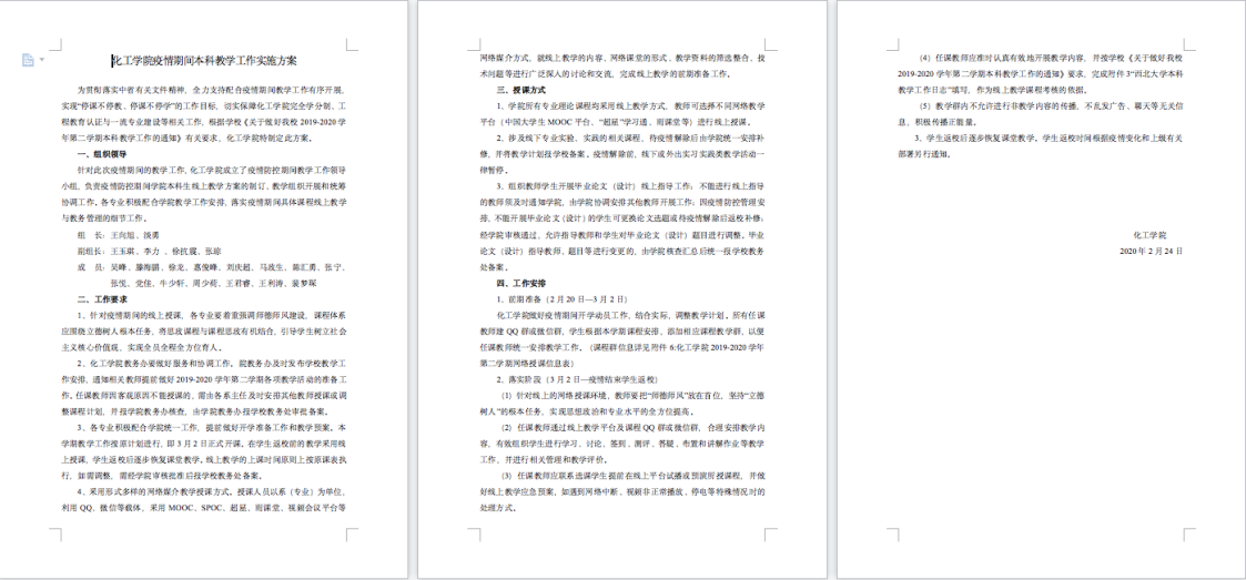 一是做好工作部署。2月24日,公司制定《2026年国际足联世界杯疫情期间本科教学工作实施方案》,成立疫情防控期间本科教学工作领导小组明确职责,保证线上教学工作稳步推进。