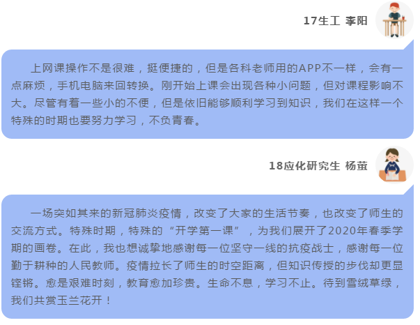 四是员工积极开展线上学习,网络沟通在线答疑。与老师们一样,同学们也为上网课做了充足的准备,提前下载好各个学习APP,认真阅读使用方法,及时向老师反馈问题。上课时专注听讲,认真记录,并通过QQ、微信聊天积极地回应老师、提出疑惑。