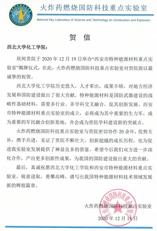 12月19日,西安市特种能源材料重点实验室揭牌仪式暨第二届先进含能材料(西安)学术研讨会成功举办。