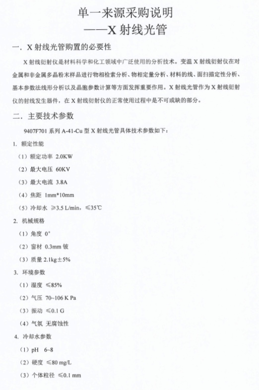 X射线光管单一来源采购说明.pdf