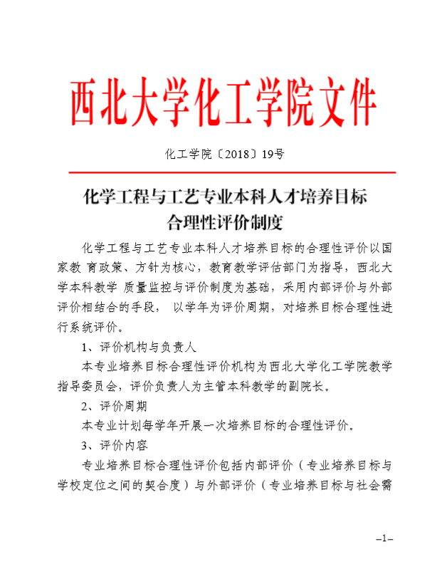 化学工程与工艺专业本科人才培养目标合理性评价制度
