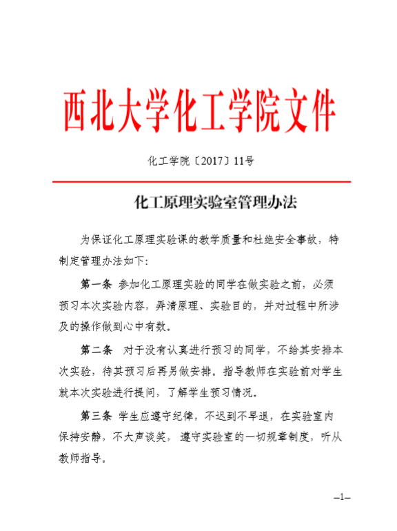 化工原理实验室管理办法