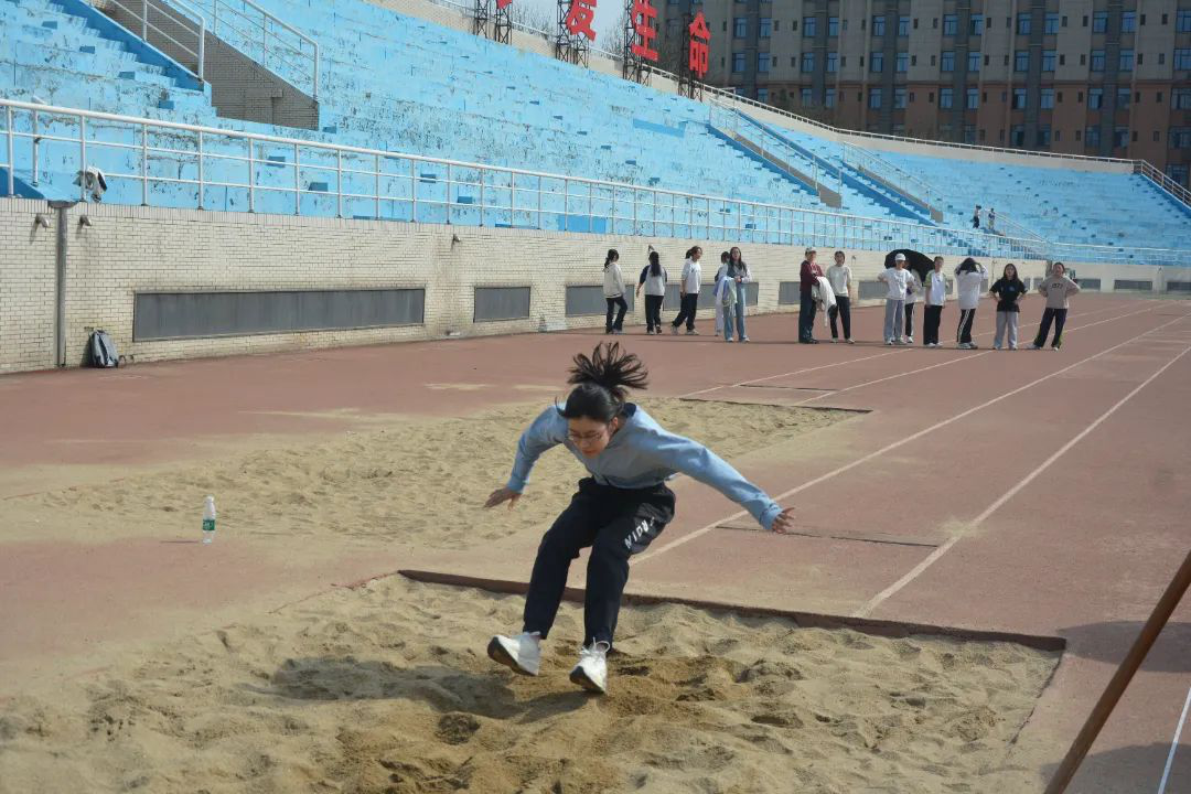 田径场上,各班级方阵踏着铿锵的步伐迎面而来——少年们挺拔的身姿如初升的朝阳,在跑道间洒落点点跃动的金光。蓬勃朝气裹挟着整齐的踏步声,将整个运动场浸润在青春跃动的韵律里。