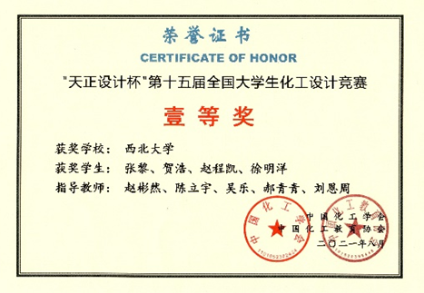 化工设计竞赛全国一等奖
